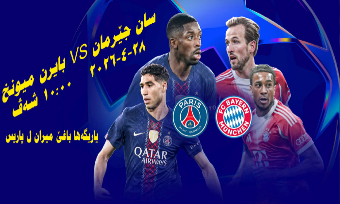 ئەڤرۆ ل دەمژمێر 10ی شەڤ چاڤ هەموو دێ‌ بەر ب یاریگەها باخچەیێ‌ شازە ل پایتەختێ‌ فرەنسا پاریس چن، ژبۆ دیتنا ئێك ژ ب هێزترین یاریێن گەڕا پێش دووماهییا چامپیۆنز لیگ پاریس سانجێرمان خودانێن ئەردی بەرانبەر مێڤانا وێ‌ یانەیا بایرن میۆنخ یا ئەلمانی ژ چارچووڤەیێ‌ گەڕا ئێكێ‌ یا چوونێ‌ ژ قارەمانییا یانەیێن ئۆرۆپا قارەمانێن خولا چامپیۆنز لیگ.