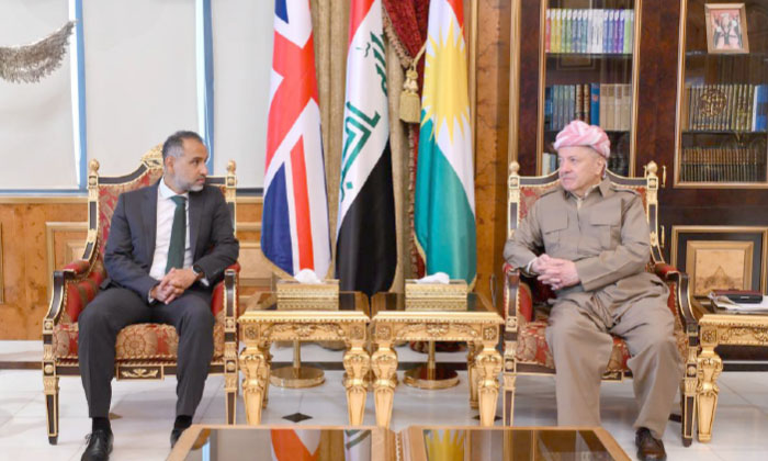 دوهی ئێكشەمبی 16/11/2025، سەرۆك مەسعود بارزانی ل پیرمام پێشوازی ل عرفان سدیق، بالیۆزێ بریتانیا ل ئیراقێ كر.