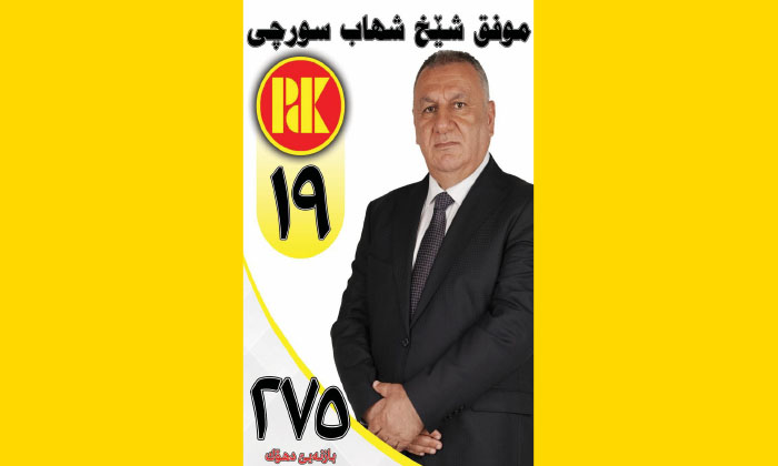 موفق شێخ شهاب سورچی، بەربژارێ ژمارە 19 د دیدارەكێ دا دیار كر، پارتی ئێكەم پارتا گەلێ كوردستانێ یە ب درێژاهیا دیرۆكێ و جڤاتا نوونەرێن ئیراقێ خودان بیروباوەرێن نەگۆر بوویە بۆ جێبەجێكرنا هەموو مافێن گەلێ كوردستانێ ب رێیا دەستووری، من ژی بەرنامەیێ خوە هەیە د چارچووڤێ بەرژەوەندیا گشتی دا كو چەندین كاران بۆ خەلكێ كوردستانێ جێبەجێ بكەین.
