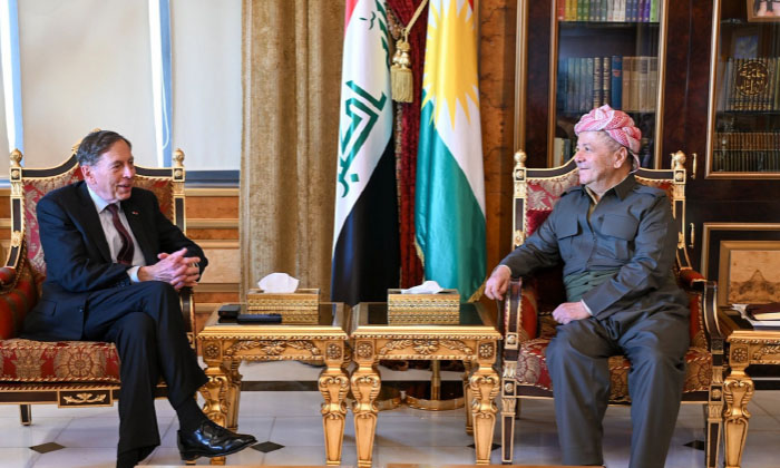 سەرۆک مەسعود بارزانی دوهى دوشەمبی 13ی چریا ئێكێ 2025ێ، پێشوازی ل جەنەرال دەیڤد پێتریۆس سەرۆکێ پێشتر یێ دەزگەهێ هەواڵگرییا ئەمریکا (سی ئای ئەی) کر.