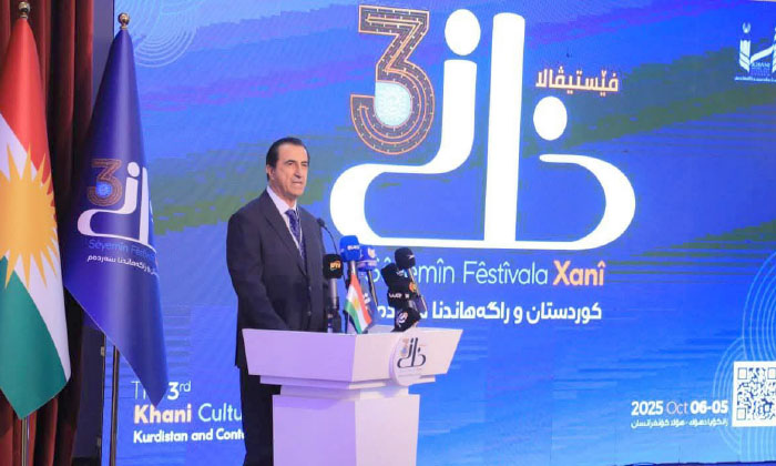 بەرێزان… ئەڤرۆ دهۆك بەختەوەرە كو ناڤەندا خانی یا رەوشنبیری و راگەهاندنێ ب ئامادەبوونا هەوە یێن بەرێز سێیەمین فێستیڤالا خۆ ل هولا كونفرانسان، ل زانكۆیا دهۆك، ل باژێرێ دهۆكێ دگێریت. كوردستان وەلاتێ كوردان و هەمی پێكهاتێن وێ یێن جڤاكی یە، ڤی وەلاتی ب مللەت و هێزێن خویێن سیاسی و جڤاكی ڤە پەیاما خۆ یا بەردەوام هەیە، كو پەیاما ئاشتی و ئازادی و دیموكراتیێ یە، ب رێك و ئامراز و شێوازێن جورا و جور پەیاما خۆ دگەهینیت و خۆ دگونجینیت دگەل پێشڤەچونێن زانستی و تەكنولوژی یێن سەردەم.