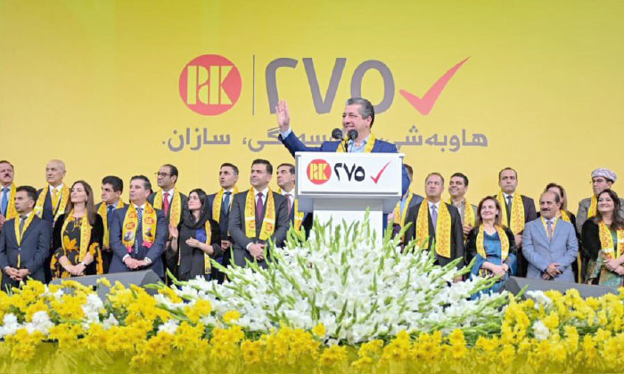 دوهی دوشەمبی 20/10/2025، مەسرور بارزانی، جێگرێ سەرۆكێ پارتی دیموكراتی كوردستان، پشكداری د ئاهەنگا بانگەشەیا لیستا 275 یا پارتی دیموكراتی كوردستان پارتی ل هەولێرێ كر و د پشكەكا پەیڤا خوە دا گوت» پارتی بێگومان مەزنترین و ب هێزترین حزبە ل سەر ئاستێ كوردستانێ، بەلێ دخوازین بسەلمینین كو ل سەر ئاستێ ئیراقێ ژی پارتی ب هێزترین پارتا سیاسییە ئەڤرۆ ل مەیدانا كوردستانێ و هەموو ئیراقێ هەیە».