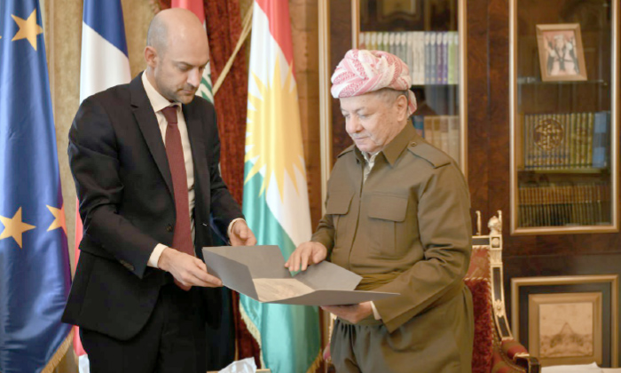 سەرۆك بارزانی و ژان نوێل بارۆ، وەزیرێ دەرڤەیێ فەرەنسا ل هەولێرێ كۆمبوون.
