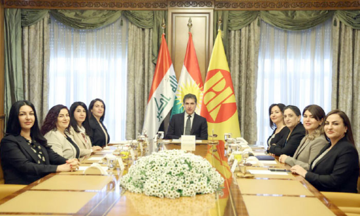 نێچیرڤان بارزانی، جێگرێ سەرۆكێ پارتی دیموكراتی كوردستان دوهی چارشەمبی 1/10/2025 ل گەل هەڤالێن كۆمیتەیا ناڤەندی و لژنەیا كۆنفرانسێ ئێكێ یێ ئافرەتێن كوردستانێ كۆمبوو.
