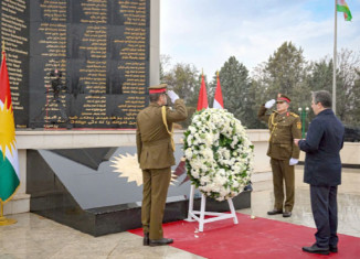 مەسرور بارزانی قەفتەكا گولان ل سەر مۆنۆمێنتا شەهیدێن ئێكێ شوباتێ دانا