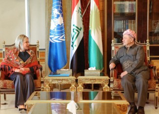 سەرۆك مەسعود بارزانی ل سەلاحەدین پێشوازی ل جینین پلاسخارت، نوونەرا تایبەت یا سكرتێرێ گشتیێ نەتەوەیێن ئێكگرتی ل ئیراقێ كر.