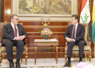 نێچیرڤان بارزانی، سەرۆكێ هەرێما كوردستانێ پێشوازی ل جۆشوا هاریس، كاربڕێڤەبەرێ بالیۆزخانەیا ئەمریكا ل ئیراقێ كر.