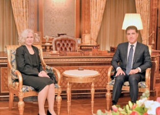 نێچیرڤان بارزانی سەرۆكێ هەرێما كوردستانێ دوهی پێشوازی ل ئانو سارێلا بالیۆزا فینلەندا ل ئیراقێ كر.