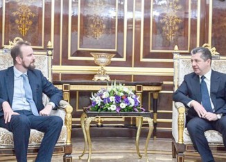 سهرۆكێ حوكمهتا ههرێما كوردستانێ، مهسرور بارزانی، پێشوازی ل (ڤیلله ڤاریۆلا) بالیۆزێ ئێكهتیا ئهورۆپا ل ئیراقێ كر.