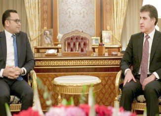 سهرۆكێ ههرێما كوردستانێ، نێچیرڤان بارزانی، ل گهل (مهمهت مهولوود یاكوت) قونسۆلێ نوو یێ وهلاتێ توركیا ل ههرێما كوردستانێ كر و ههموو پشتهڤانیهك و هاریكاریهك...