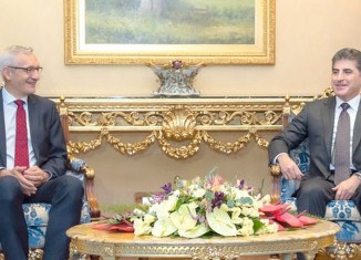 سهرۆكێ ههرێما كوردستانێ، نێچیرڤان بارزانی، ل ههولێرێ پێشوازی ل مارتین یێگهر، بالیۆزێ ئهلمانیا ل ئیراقێ كر.
