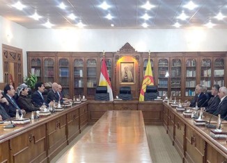 سكرتێرێ مهكتهبا سیاسی یا پارتی دیموكراتی كوردستان، فازل میرانی، ل بارهگههێ مهكتهبا سیاسی پێشوازی ل شاندهكێ بزاڤا دیموكراتی یا ئاشووری ب سهرۆكایهتیا یونادم یوسف...