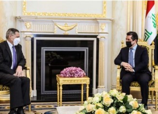 مهسرور بارزانی، سهرۆكێ حكومهتا ههرێما كوردستانێ دوهى پێشوازی ل ماتیۆ تولهر، بالیۆزێ ئهمریكا ل عیراقێ كر و د كۆمبوونهكێ دا دووماهى پێشهاتێن عیراقێ و...